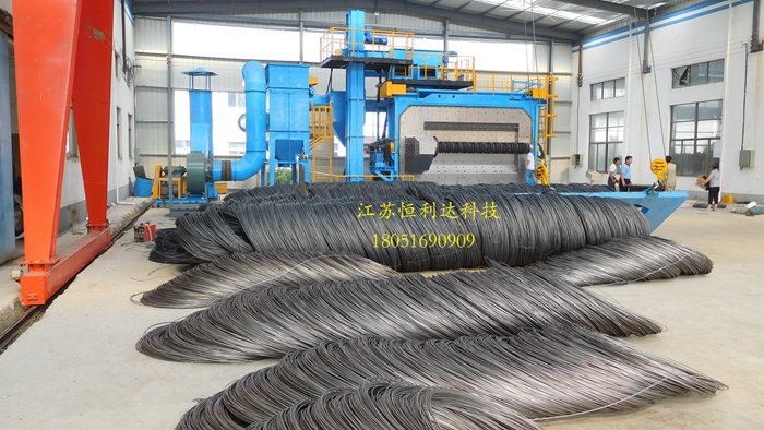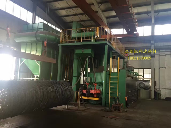HLZQ型线材盘圆整捆抛丸机技术附件该机型适用于线材盘卷的机械除氧化层、除去表面氧化层,也适用于圆钢、六角形型钢和方钢。盘卷被放置在两个旋转臂上。一个在抛丸舱内待处理,一个在抛丸舱外用来卸下处理完的盘卷和装上待处理的带氧化铁皮的盘卷。旋转臂是电动的并安装在一个旋转门上。旋转门通过旋转把处理完的盘卷转出并把未处理的带氧化铁皮的盘卷转入抛丸舱内。整个工作周期实现自动化操作。操作者只需从旋转臂上把处理完的盘卷取下再把下一卷待处理盘卷放在旋转臂上。该种机器的处理结果是表面彻底清洁。我们保证金属表面完全按照美国标准协会Asa2.0至2.5的标准去除氧化层和灰尘。每捆盘圆抛丸时间8~10分钟!