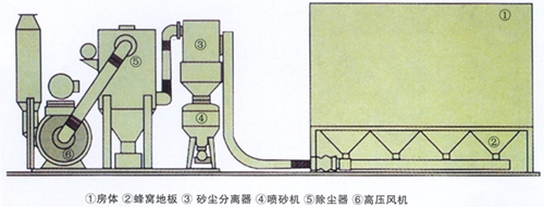 是我公司在传统喷砂房的基础上结合国外最新技术开发的一种高新技术产品,它采用美国ABB公司技术生产的蜂窝式地板和气动输送原理,利用空气动力将砂料自动回收循环使用。避免了传统喷砂房中的绞车、刮板、链条和斗式提升机等机械容易磨损、维护费用高昂的缺点,且无须深挖地坑,大大缩短施工周期和费用。