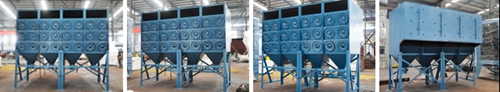 滤筒式除尘器主要由设备支架、箱体、滤筒、脉冲清灰装置、进口装置、出口装置六部分组成。
